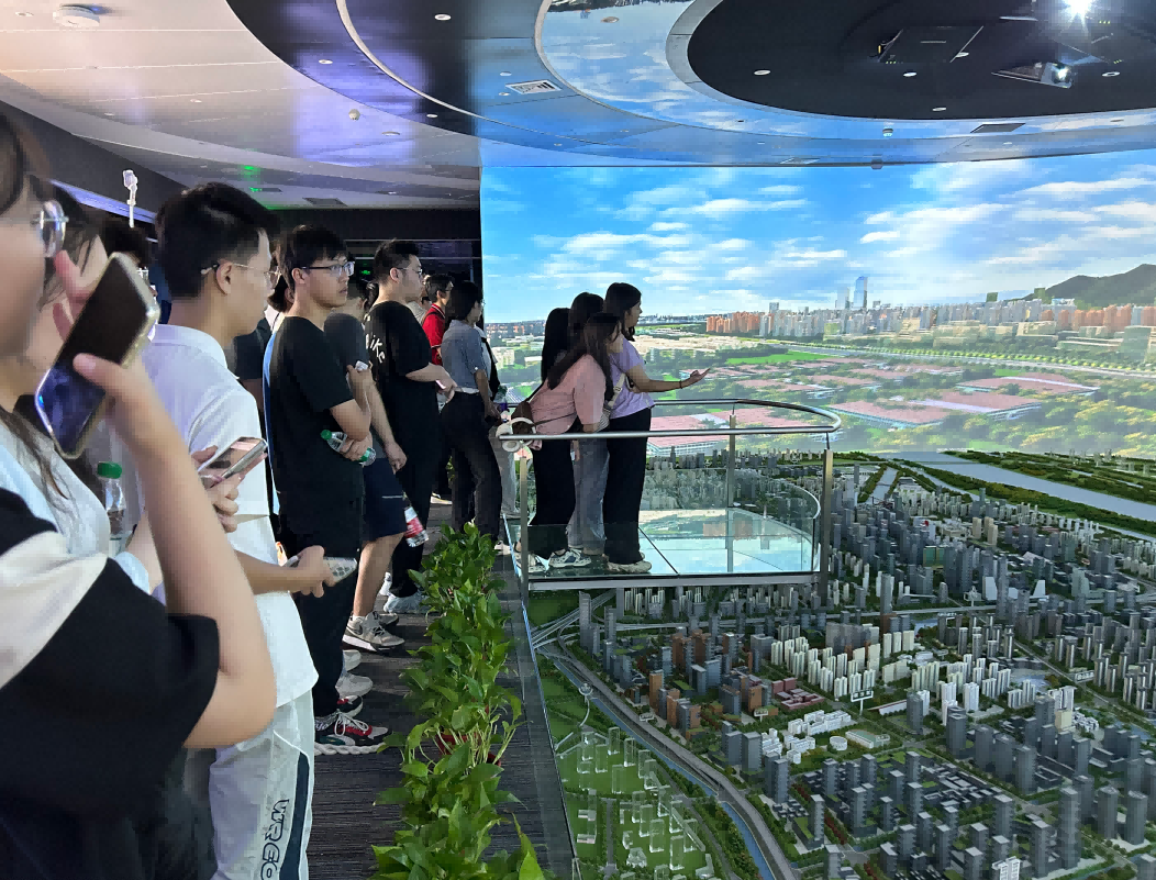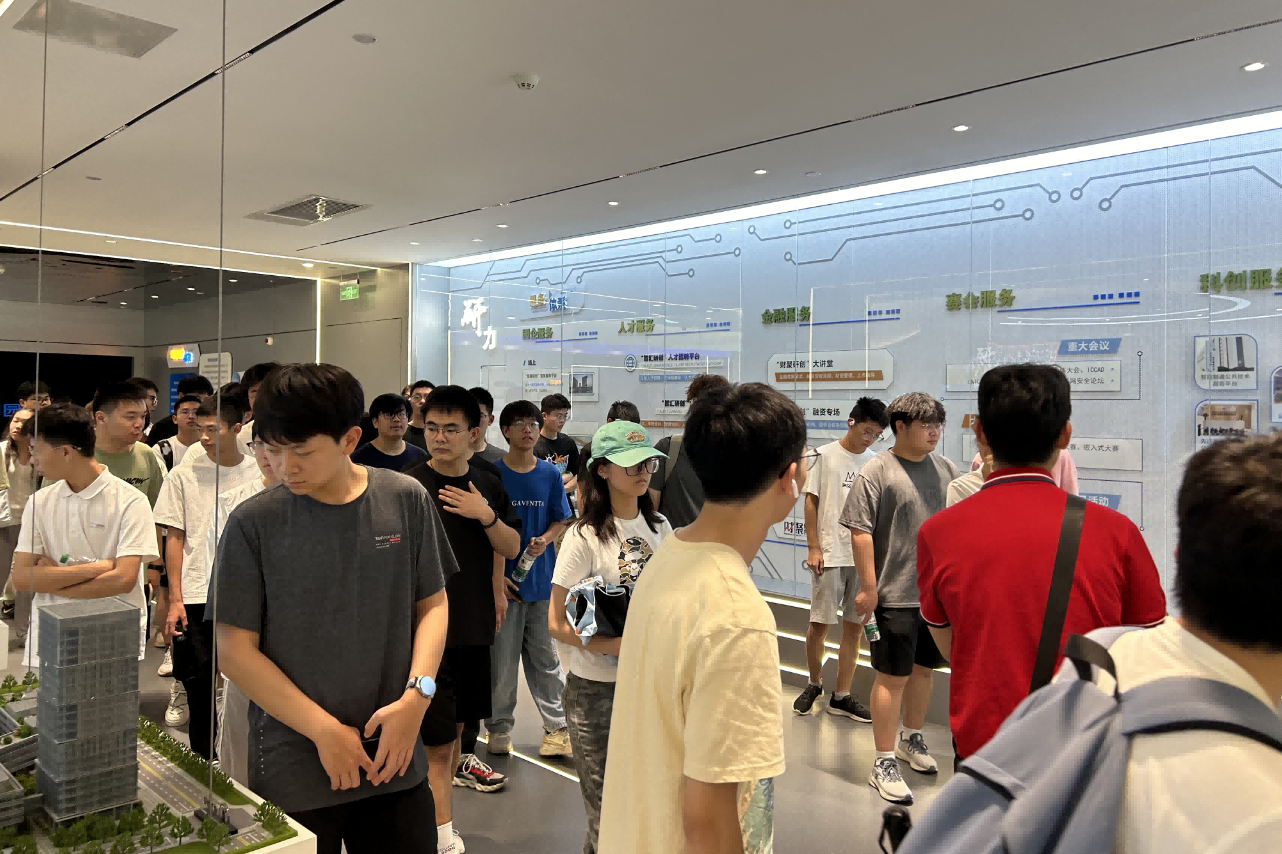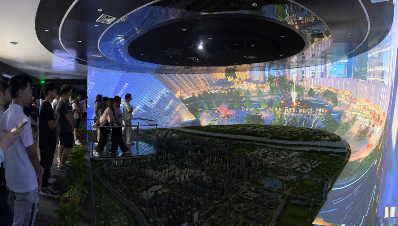 园区内现代建筑群错落有致,每一砖一瓦都蕴含着创新和科技的基因。米兰(中国)AC米兰科技IT菁英暑期实训营的学员们怀揣着对科技的无限憧憬步入研创园展厅。展厅内部设计充满科技感,一块块巨大的模型和显示屏映入眼帘,生动展现了研创园的科技规划,以及从梦想走向现实的开展历程。